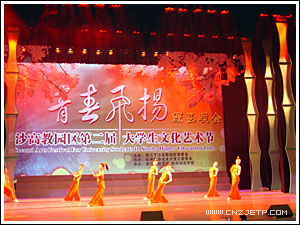 11月18日晚,浙江财经学院文化活动中心剧场掌声阵阵,欢歌如潮,下沙高教区14所高校的大学生,正以自己的青春激情演绎一台名为“青春飞扬”的大型综艺晚会,为期近一个月的下沙高教园区第二届大学生文化艺术节由此正式拉开帷幕。副省长盛昌黎宣布文化艺术节开幕,省政协副主席梁平波向文化艺术节主办方赠送题词。省委教育工委副书记、省教育厅副厅长蒋胜祥,团省委副书记徐旭以及下沙高教园区各高校的有关负责人出席了开幕式晚会。我院党委书记童学敏、副书记潘素芳及有关部门负责人应邀出席了晚会。