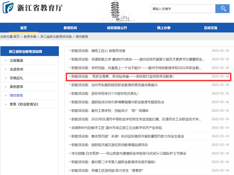 浙江省教育厅:职教活动周 | 筑梦正青春,劳动绘幸福——浙经贸打造特色劳动教育!