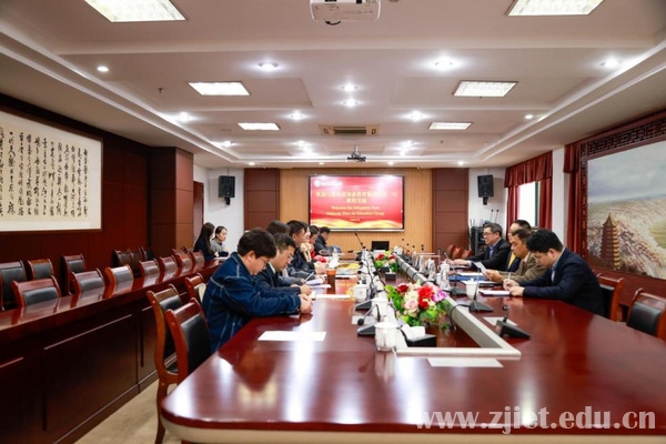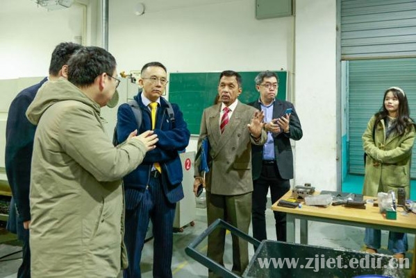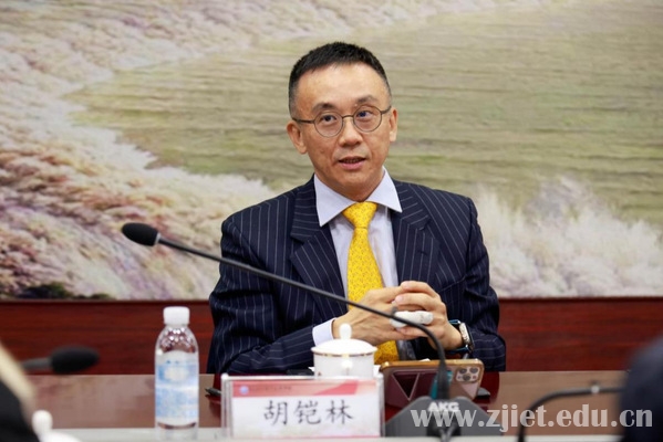 陈德泉向胡铠林一行表示欢迎,并简要介绍了学校总体办学情况及教育国际化新成效。他表示,学校与马来西亚深斋教育集团合作共建的康博教学点入选了浙江省首批“一带一路”丝路学院,依托该平台,双方通过开展师生双向研学及访学交流,举办了“中文+职业技能”培训,推进专业共建,共同实施“2+1”人才共同培育模式,持续深化“职业教育共同体”的内涵建设。他希望,值此中马建交50周年暨“中马友好年”的发展契机,双方能够本着“互信共赢,互学互鉴”的合作理念,升级迭代“康博丝路学院”运营管理模式,优化人才培养体系改革,高质量培养具有国际竞争力的高素质技能人才,赋能中资企业“出海”,促进中马经济发展。